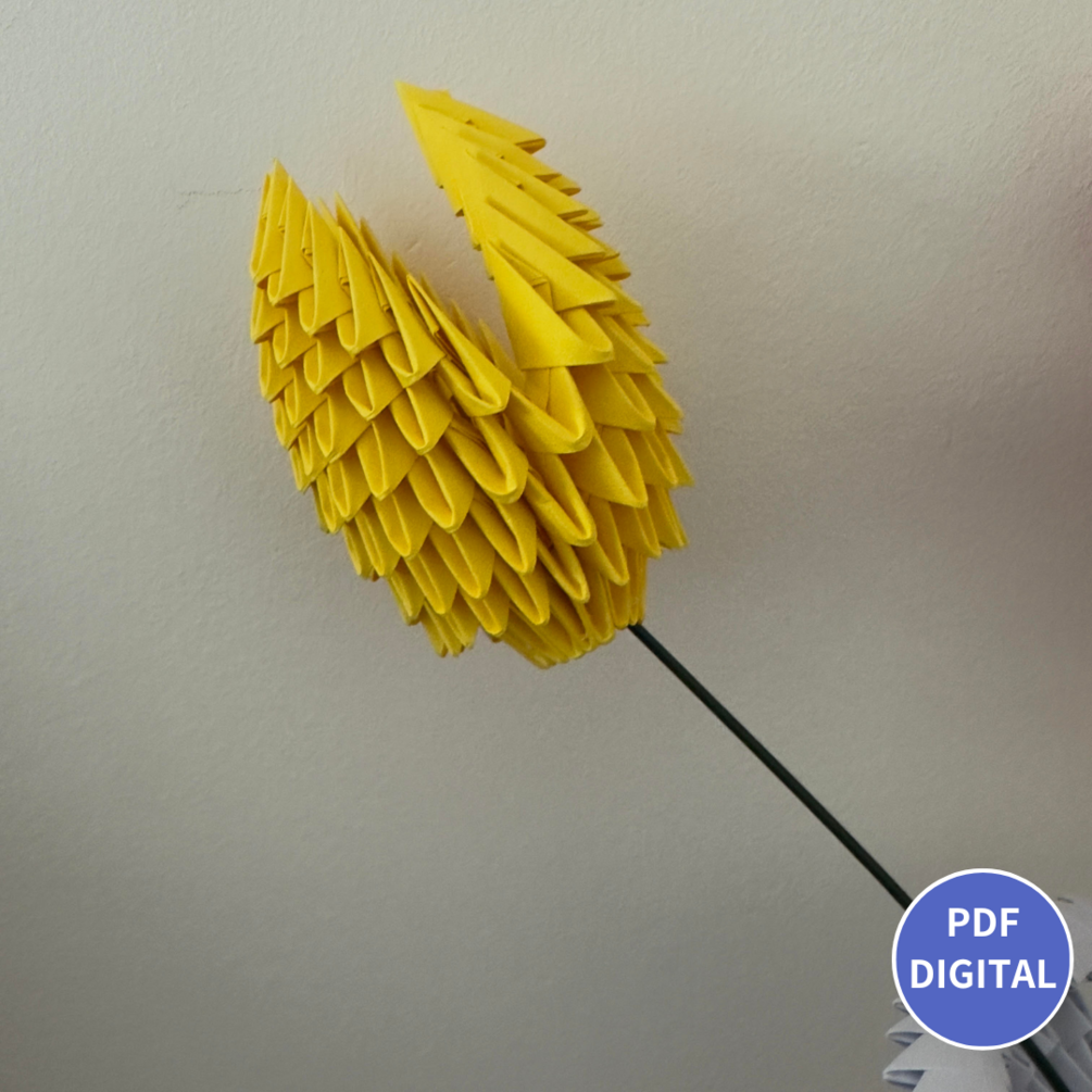 3D Origami Yellow Tulip [PDF Tutorial], 3D Paper Craft DIY, Decor, Digital Template, Art Project Idea