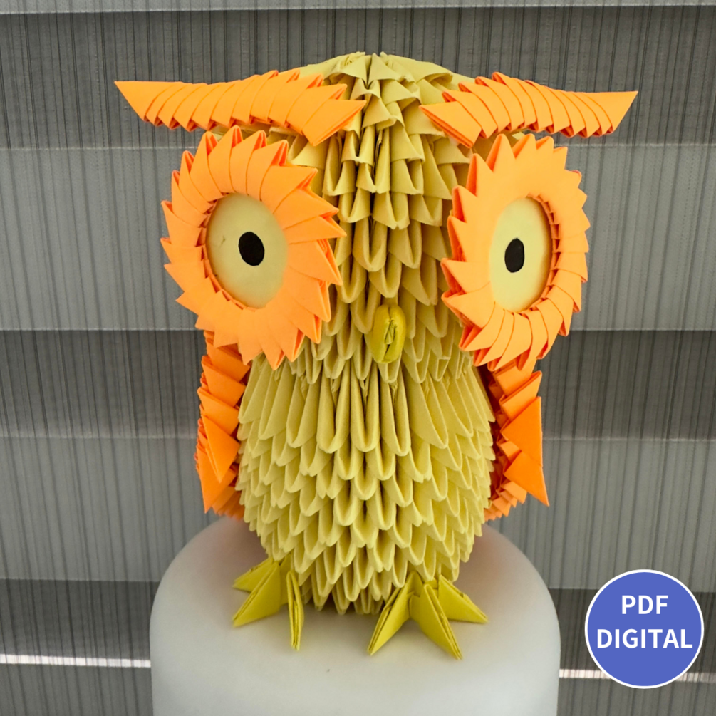 3D Origami Owl [PDF Tutorial], 3D Paper Craft DIY, Decor, Digital Template, Art Project Idea
